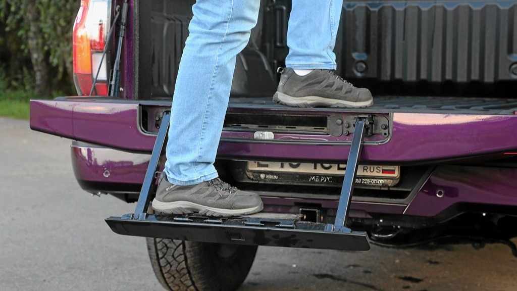 Кузов пикапа конструкторы «Фотона» также постарались сделать максимально удобным. Они не только оснастили откидной задний борт амортизаторами, чтобы открывать и закрывать его можно было плавно, но и встроили в него выдвижную ступеньку, которая спокойно выдерживает центнер моего живого веса.