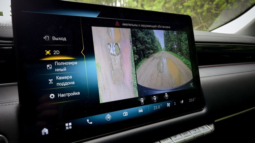 Помогают и камеры кругового обзора: картинка чёткая, хорошо видно даже бордюры и люки.