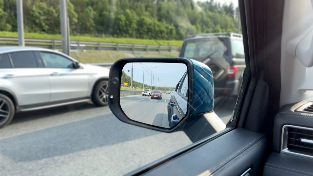 В потоке сразу чувствуется — это крупный автомобиль. Высокая посадка даёт хороший обзор вперёд, отчётливо видно углы капота, что помогает точно чувствовать габариты. Зеркала заднего вида заслуживают отдельного упоминания: они действительно огромные, в них легко контролировать две соседние полосы, а при перестроениях и парковке они становятся главным помощником.